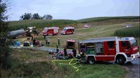 Unterstützung, indem sie mit Vakuumfässern Löschwasser zur Einsatzstelle brachten. Anfangs