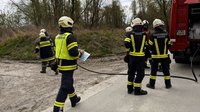 Heute fand die diesjährige Frühjahrsübung statt. Geübt wurde die Wasserentnahme an abgelegenen und schwer zugänglichen Stellen – diesmal bei der Schlamminsel. Dort wurde ein sich rasch ausbreitender Vegetationsbrand simuliert.