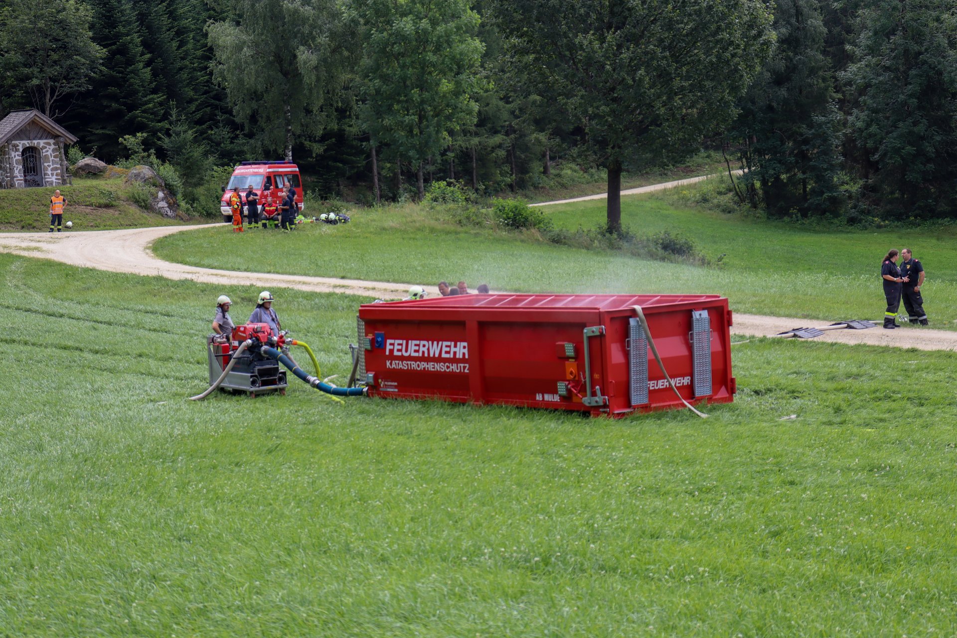 Am zweiten Einsatzort in Waldhausen im Strudengau beim Forsthaus Hinteredth arbeitete man zusammen Hand in Hand mit den Einsatzorganisationen. Die Suchhundestaffel hat alle Personen auffinden und zusammen mit den Florianis, retten können. Um die Wasserversorgung in diesem entlegenem Gebiet sicherzustellen, ist diese einerseits im Pendelverkehr mit den Tankwägen der Feuerwehren und andererseits mit Unterstützung von oben in Form von Hubschraubern und Drohnen durchgeführt worden.